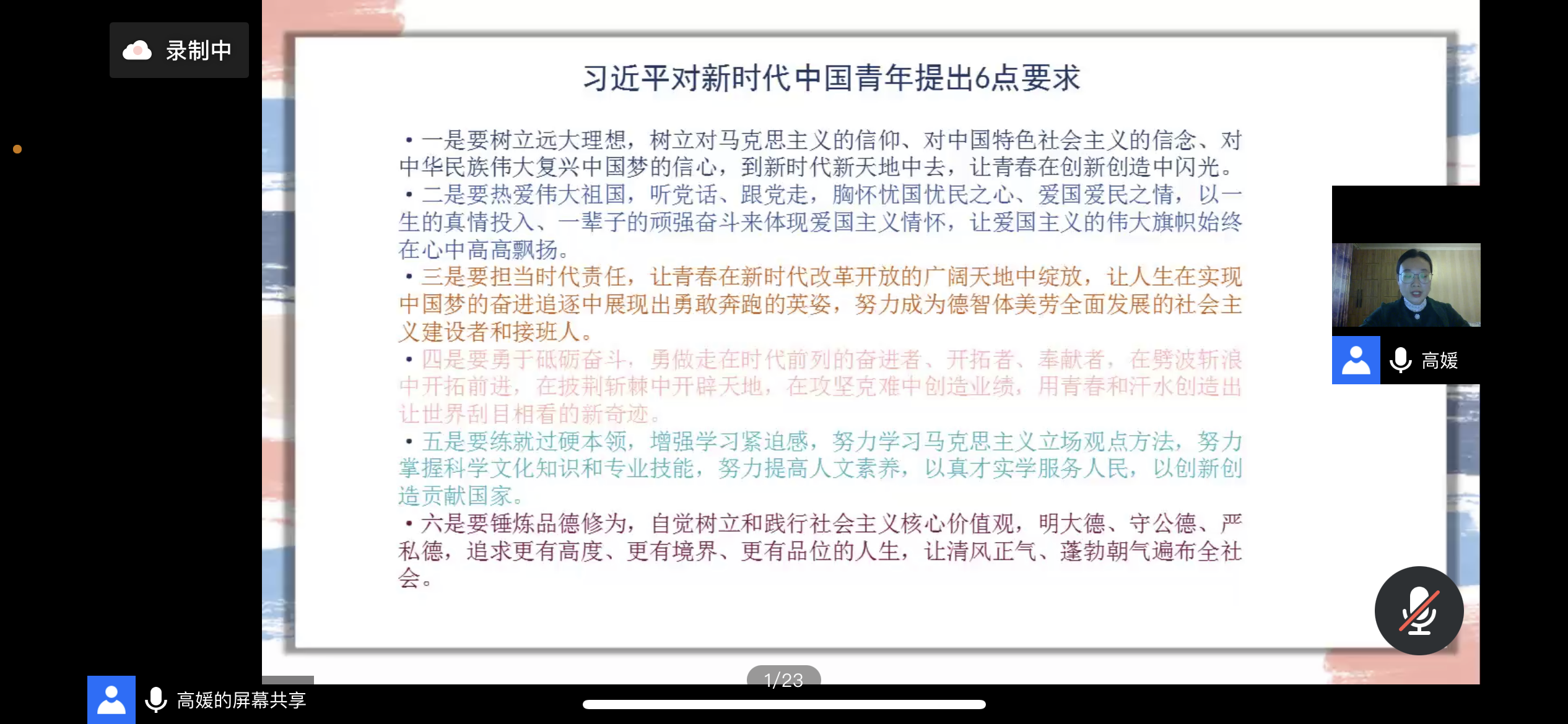 在线上举行了分党校第三十九期入党积极分子和第十五期发展对象党课第四讲,本次党课由校团委副书记高媛主讲。