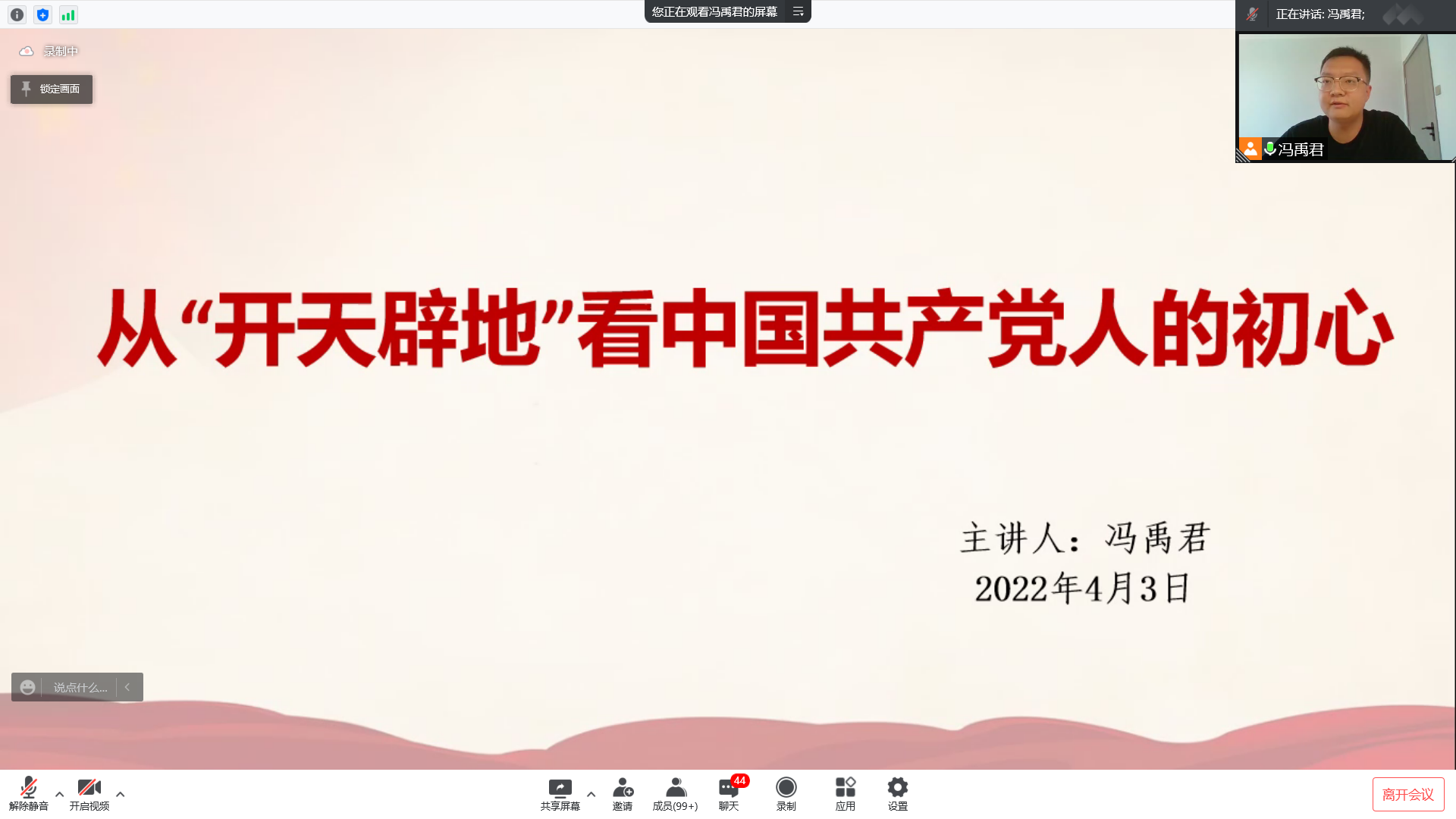 2022年分党校培训第二讲在线上顺利举行。本次培训应邀宁夏大学党委宣传部冯禹君担任主讲,全院176名入党积极分子、发展对象参加了培训会。