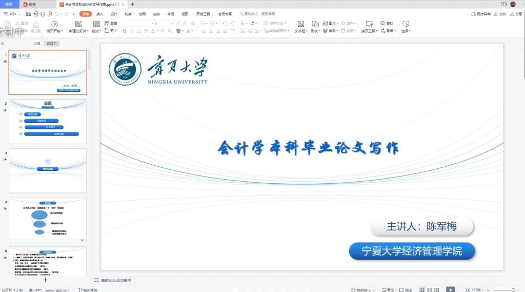 论文写作,文献意识必不可少,在开题报告方面,陈军梅谈到了文献综合法。她表示,在知网上搜集文献资料,能够全面地、正确地了解掌握所要研究问题。同时,同学们要学会定量、定性分析,由此及彼、由表及里,达到认识事物本质,揭示内在规律的目的。