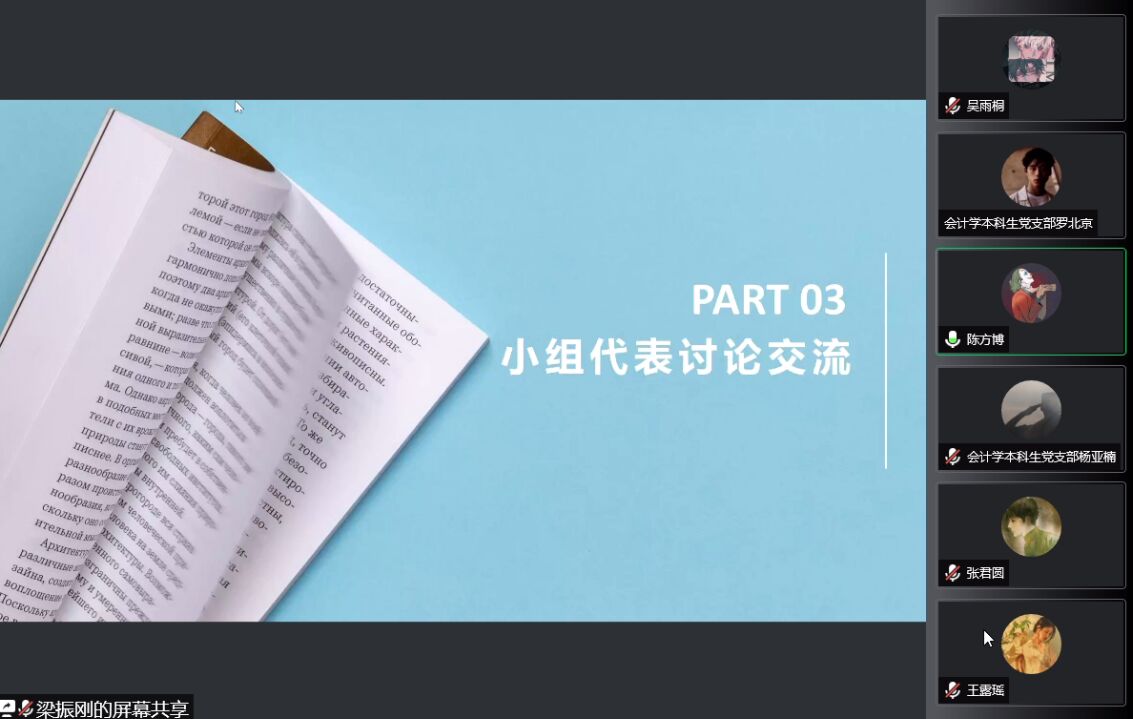 会计学本科生党支部与济元书社在线上开展“《中国抗疫!》读书分享会”。会计学本科生党支部书记孙文元出席本次会议。会计学本科生党支部党员、发展对象、积极分子,济元书舍部分同学参加本次会议。本次会议由梁振刚主持。