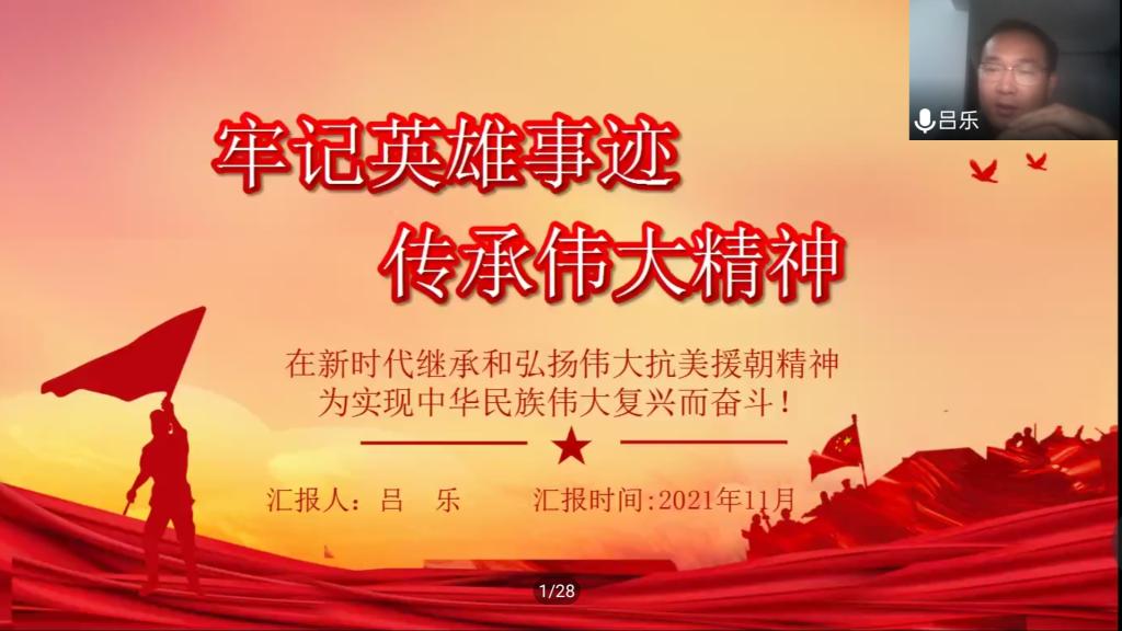 各位同志对习近平总书记在纪念辛亥革命110周年大会的讲话进行了热烈讨论。会计学本科生党支部杨茹萍同学表示,辛亥革命推动了中国社会变革,为实现民族复兴探索了道路,我们一定要牢记习近平总书记的教诲,弘扬辛亥革命先驱的崇高精神,共襄中华民族伟大复兴伟业。会计学本科生党支部余晓静分享了自己的看法与感悟,她说,我们肩负着历史重担,少年强,则国强,少年兴,则国兴。同时,余晓静号召同学们要传承革命精神,求是创新,认真探索。重温历史,先辈们的热切呐喊回荡在耳畔,催人奋进。牢记使命,践行担当的责任,吾辈自强不息。度之往事,验之来事。在新时代继承和弘扬伟大的抗美援朝精神,为实现中华民族伟大复兴而奋斗,化学技术学生党支部书记吕乐讲解抗美援朝的历史。吕乐提醒同学们要铭记历史,缅怀英雄,为了更好地前行,大力弘扬和传承伟大的抗美援朝精神。他强调全体同学要直面挑战,勇于创新,在新的起点上,为中华民族伟大复兴进一步发展作出应有贡献。其余数位同志也进行了分享。