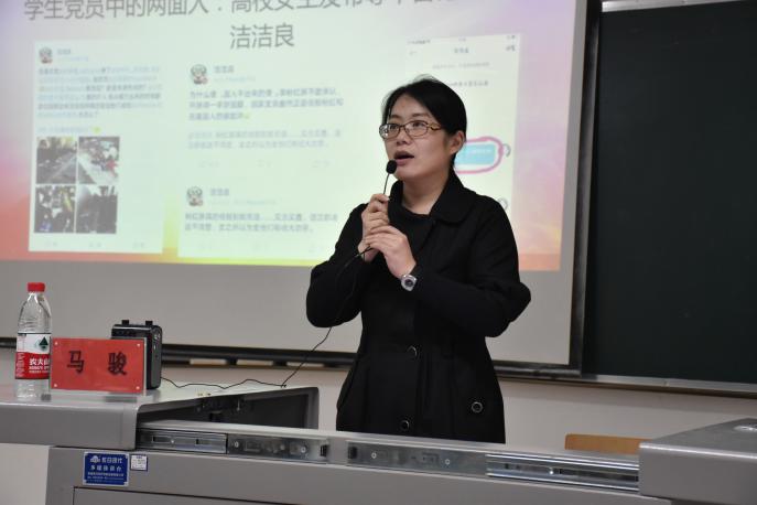 首先,马骏副书记就近期高校学生党员“洁洁良”发表不当言论一事作了深入剖析,她指出在广大学生党员中仍存在着一些言行不一的“双面人”,这类政治上的“双面人”、“两面派”不但无益于塑造党员自身的良好形象,反而会给党的事业带来严重危害。随后,她围绕“坚定不移谈信仰,做合格共产党员”的主题,从“谈谈入党申请书”“信仰是什么”“榜样的力量”“为什么要加入中国共产党”和“做合格共产党员”五个方面,带领学员们回顾了最初入党的动机和初衷,要求学员们在今后的学习生活中要不断提高自己的思想和政治觉悟。最后,她还向与会学员分享了一名合格共产党员应有的品格,并勉励学员们以此为标准严格要求自己、发展自己。