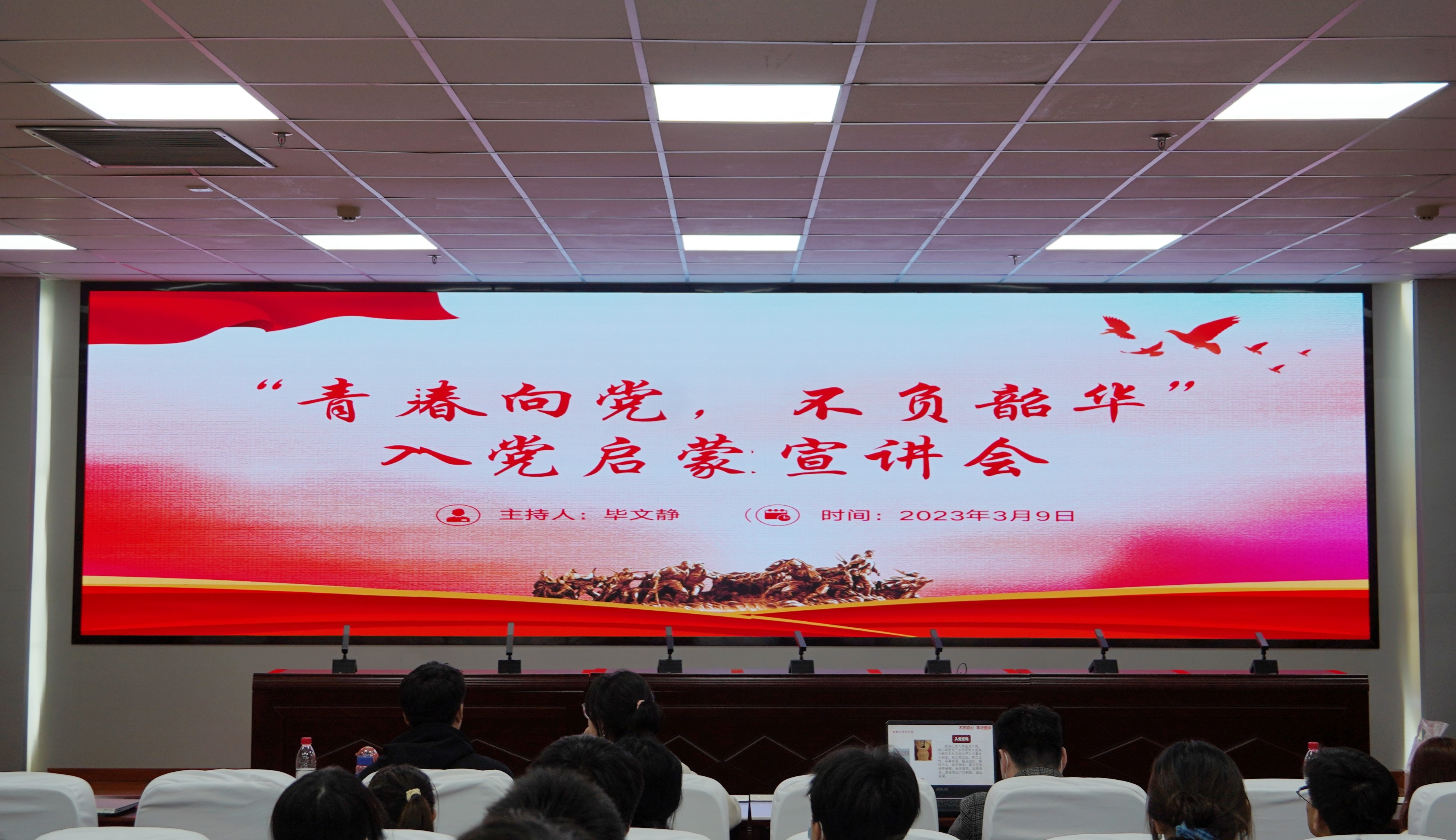 “青春向党,不负韶华”入党启蒙宣讲会于贺兰山校区文荟楼316室顺利举行。经济学本科生党支部、会计学本科生党支部代表,团委组织部代表和2022级全体本科生参加本次会议。本次会议由会计学党支部代表毕文静主持。