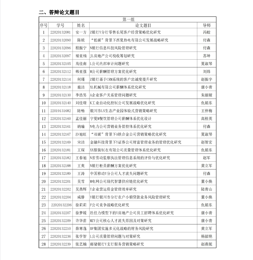 2023届工商管理硕士(MBA)学位论文答辩 (第二组)