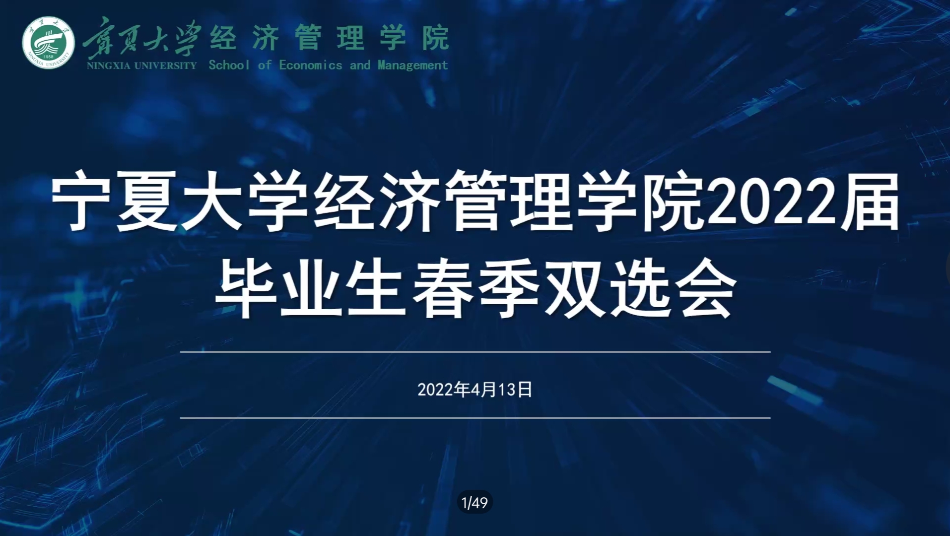 在贺兰山校区文荟楼904会议室举行了宁夏大学2022届经管类毕业生春季网络双选会暨用人单位集中宣讲会。院党委副书记马建宏、学生工作办公室辅导员艾萨•阿尤普、游戏赚钱平台
