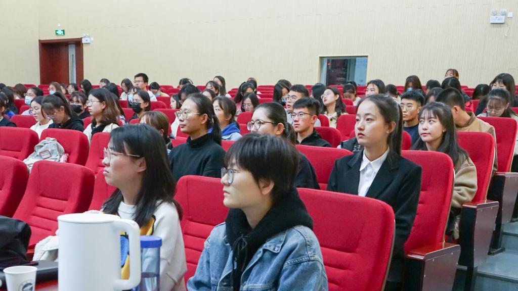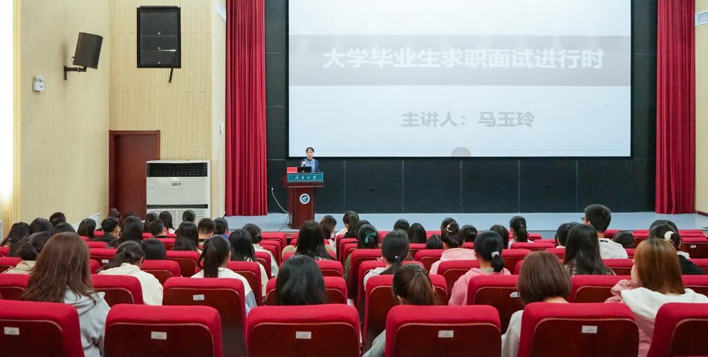 马玉玲从就业观、面试概述、面试技巧三个方面展开讲述。她向大家提出了“就业三问”,引发同学们对自己当下个人能力的综合思考,并建议大家应树立“你为职来”而非“职等你来”的积极就业观。在讲解过程中,马玉玲详细解释了面试的定义和HR选人模型,为大家展示了面试官眼中一名合格面试者应具备的能力和特质,大家不仅需要强硬的专业知识加持,还要让面试官看到自己的价值观、个性与潜力。想要“面面俱到”,第一印象很重要,马玉玲以场下四位同学为例,向同学们讲解了面试的仪容仪表、行为礼貌问题,还进行了坐姿、站姿等现场教学。而后,她还提到了面试中“不要过分追问薪酬”,“回答问题实事求是”,“态度诚恳”等面试技巧。讲座的最后,马玉玲表示欢迎同学们积极咨询求职相关的任何问题。