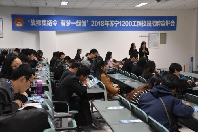 11月8日晚,2018苏宁1200工程校园招聘宣讲会在贺兰山校区文荟楼132教室顺利举行。本次招聘会由我校2013届毕业生马潇主持。苏宁云商宁夏地区部分高管、宁夏大学部分应届毕业生以及在校生到场参加。