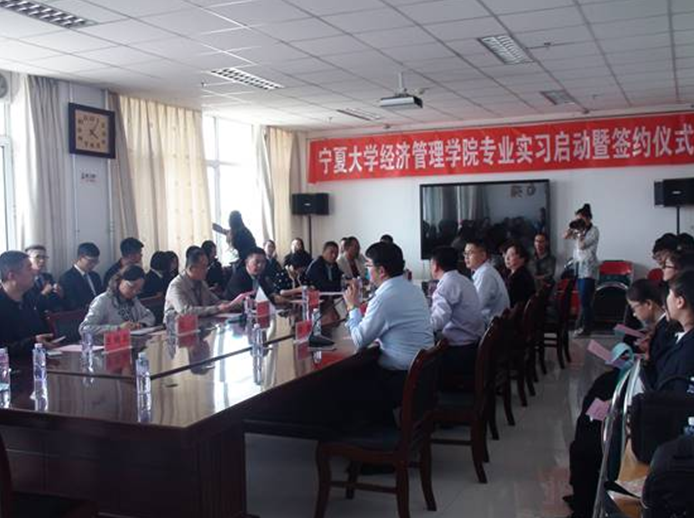 专业实习启动仪式暨签约仪式在文科楼902会议室召开。兴庆区党委副书记孔令杰,劳动就业局局长张玲等八位代表及游戏赚钱平台