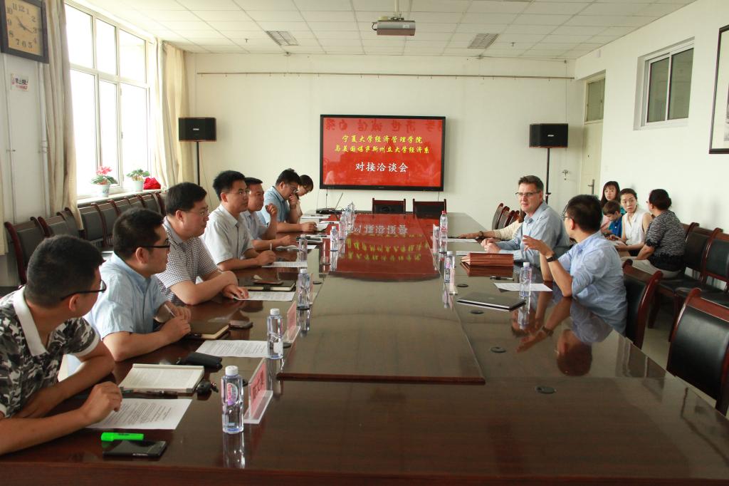 与美国堪萨斯州立大学经济系对接洽谈会”在文科楼会议室举行,出席会议的有美国堪萨斯州立大学经济系Blankenau教授及其妻子Angela,游戏赚钱平台