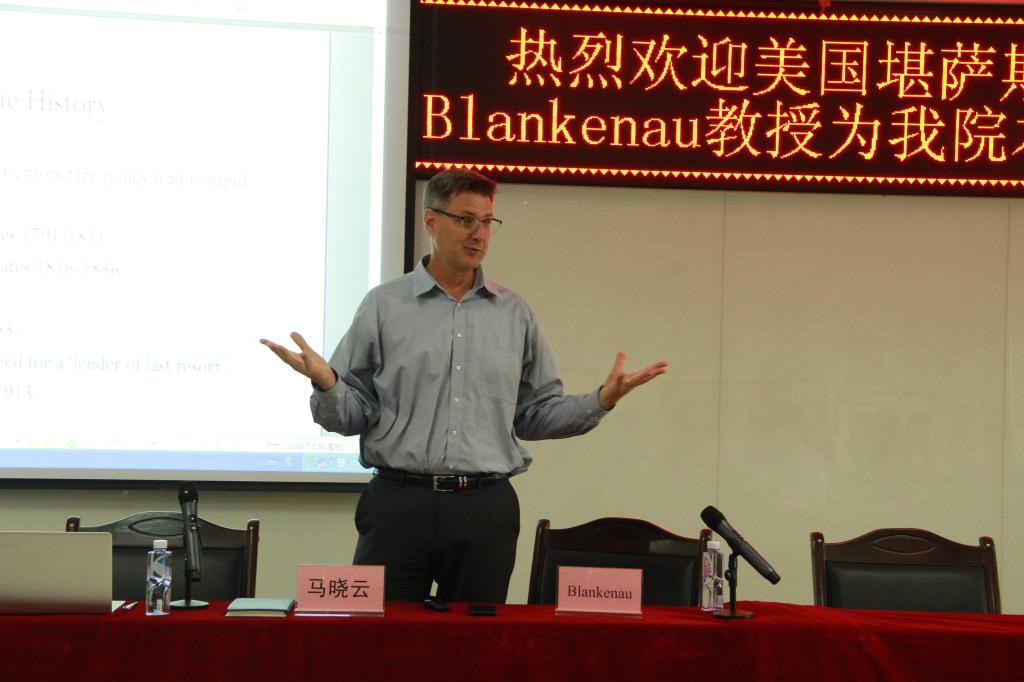Blankenau教授从美联储(美国联邦储备系统)的历史沿革、基本架构、运作机制、收入情况等几个方面介绍了美联储的基本情况,学生们受益匪浅。