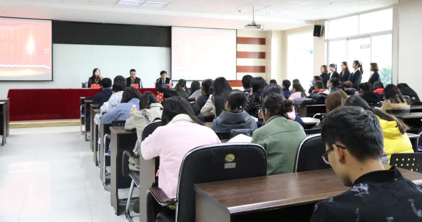 2017级辅导员张景,国泰君安银川分公司总经理陈显峰,以及股模大赛前一百名获奖者参与了本次活动。本次活动由17级学生何倩主持。