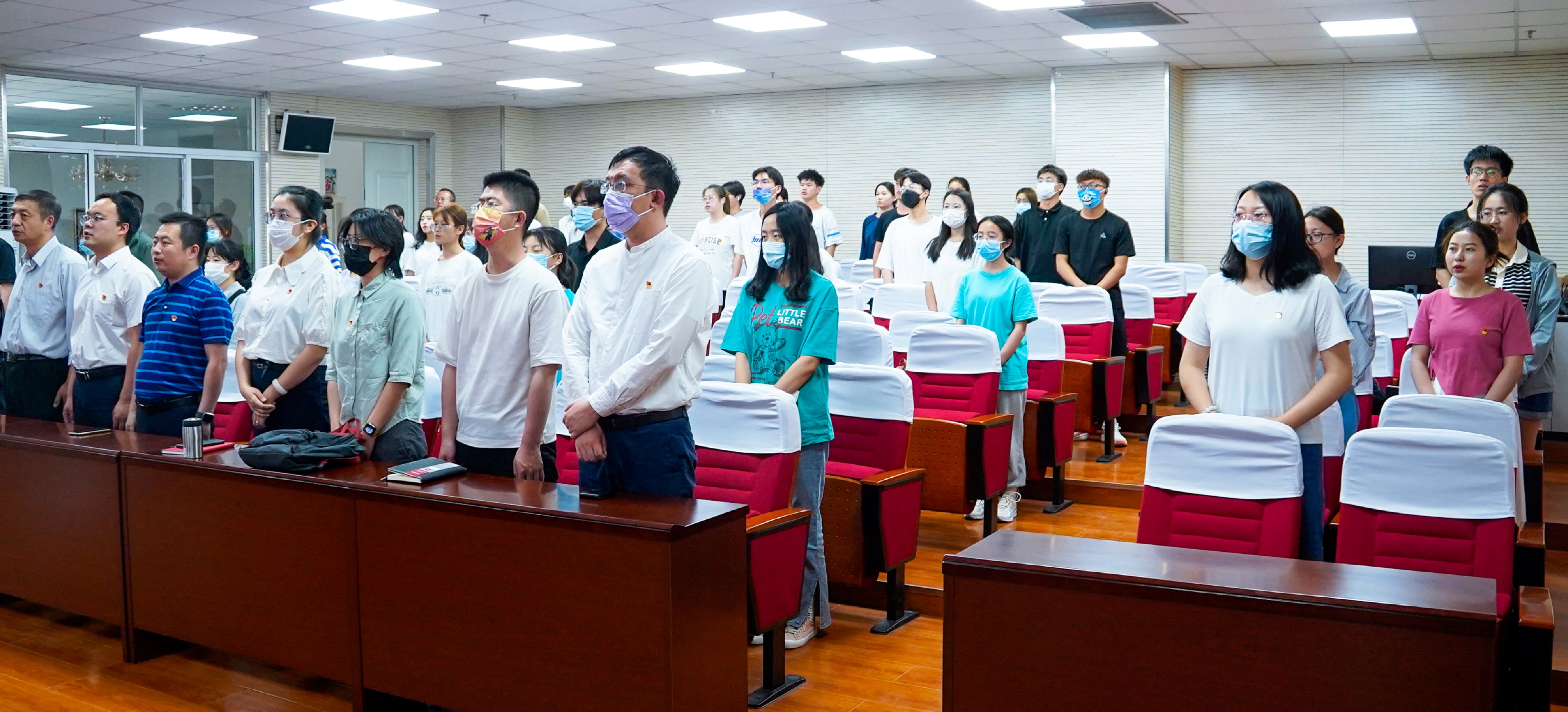 师生分别在贺兰山校区文荟楼316教室、学生宿舍观看此次开幕大会直播。