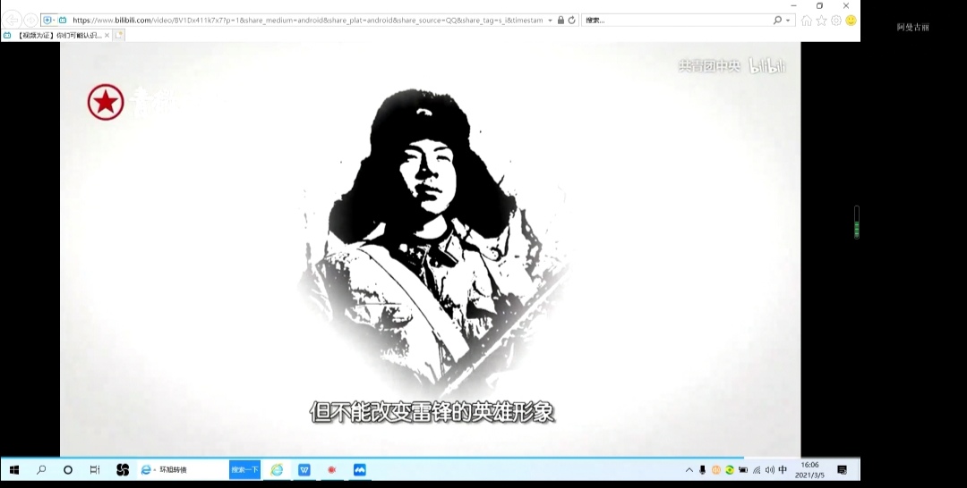 一段简短视频为我们展示了雷锋精神在当下社会发挥的重要作用,雷锋是思想道德的楷模,是全国人民学习的榜样。雷锋精神是中华民族精神的重要内容,体现了中华民族的传统美德,顺应了社会进步的时代潮流,彰显了我们党的先进本色,是社会主义核心价值体系的生动体现。来自宁大青年突击队志愿活动的马雯菲同学在接受采访时说到,我们青年一代应该积极发扬助人为乐的奉献精神,将雷锋精神融入到日常的生活学习中去。