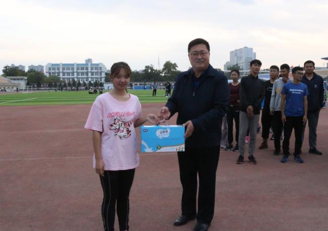 党委副书记程胜利、18级辅导员王嘉豫亲切慰问了正在训练的全体运动员们。