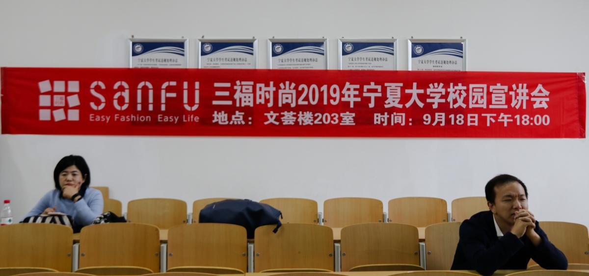 9月18日晚,在宁夏大学贺兰山校区文荟楼203室,三福百货召开了“三福时尚19届校园宣讲会”,此次宣讲会旨在扩大毕业生的就业面、增加毕业生的就业机会,吸引了众多有求职意向的大四学生前往参加。