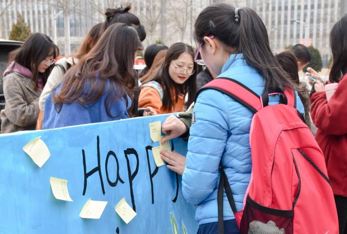 女生部在贺兰山校区食堂门口开展了女生节“心”“愿”墙展板活动。