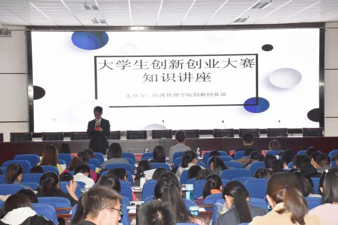 创新创业部主办的“大学生创新创业大赛知识讲座”,在宁夏大学贺兰山校区文荟楼东报告厅顺利开展。院党委副书记程胜利、学生会主席马小虎、五位大学生创新创业项目负责人出席该座谈会。2017级全体学生到场参加。