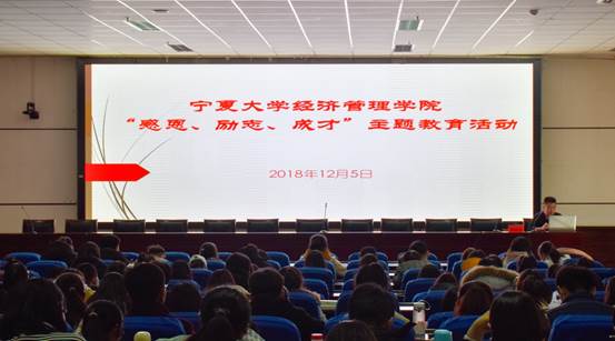 于贺兰山校区文荟楼东报告厅举行了感恩励志主题讲座。本次讲座由学生工作办公室主任黄旭兴主讲。