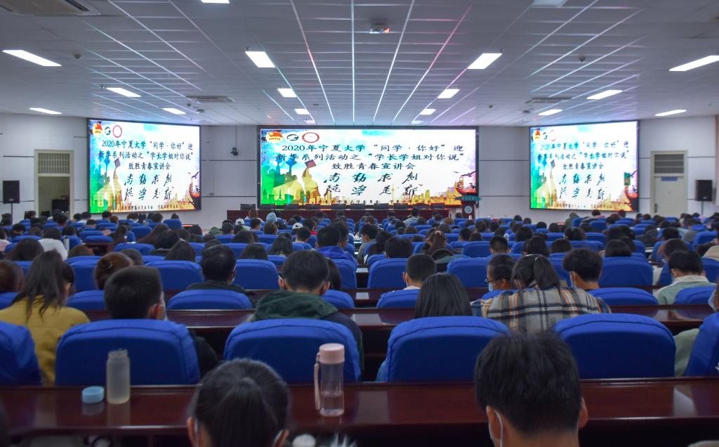 于贺兰山校区文荟楼东报告厅举办了2020年宁夏大学“同学你好”迎新季系列活动之“学长学姐对你说”致胜青春宣讲会。校学生会主席李宜轩、“青春宁大”新媒体中心主要负责人兼新闻传播游戏赚钱平台