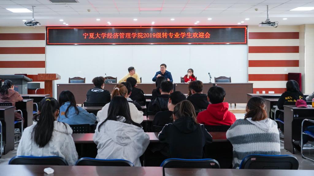 于宁夏大学贺兰山校区文荟楼316报告厅召开2019级转专业学生欢迎会。院党委副书记程胜利、学生工作办公室负责人何韶华、学生工作办公室辅导员艾萨及全体转专业学生到场参加。