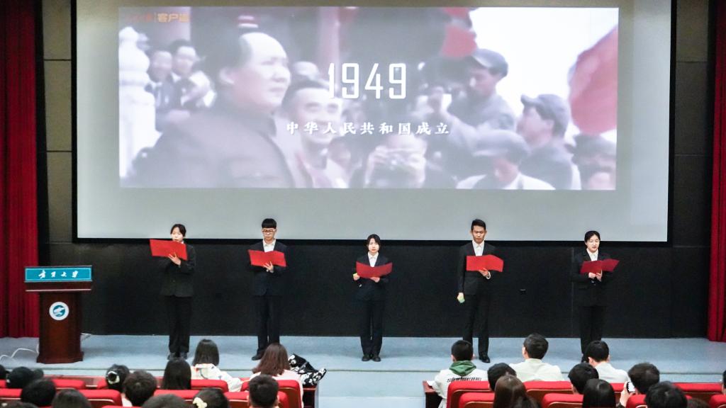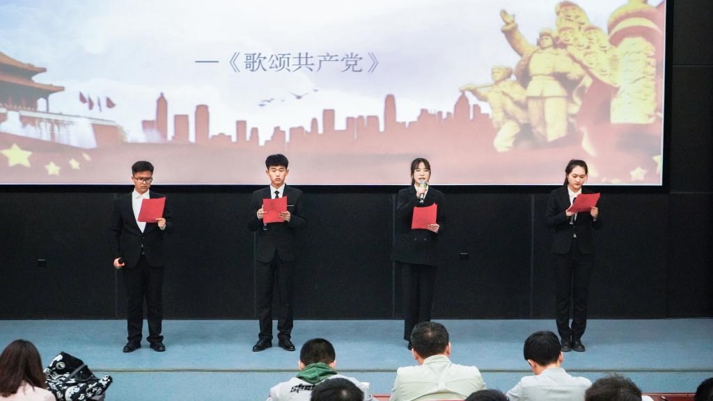 风雨苍黄百年路,高歌奋进新征程。本次比赛在全场热烈的掌声中拉开了序幕。集体朗诵组为我们带来了精彩的表演。七组选手为我们翻开了历史的画卷,或将我们带到枪林弹雨的年代;或为我们呈现改革开放后的繁荣发展;或为我们展示艰苦卓绝的建设年代;或向我们再现了新时代腾飞的东方巨龙。集体朗诵组的表现扣人心弦,令人澎湃。