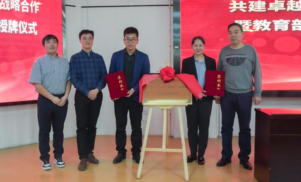 与集团进行签约,举行了教育部“产学合作,协同育人”授牌仪式并进行合影留念。