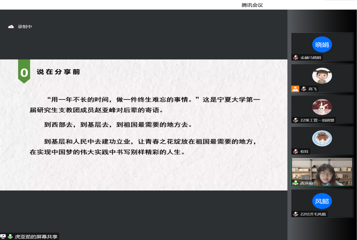10月21日、22日晚,“塞上青春讲坛”系列活动之保研经验交流分享会于线上顺利召开。本次分享会由2019级本科生宋文静、梁振刚、权旺、虎亚茹、崔琳琳、孔令怡及2022级专业会计硕士马和霞分享,游戏赚钱平台