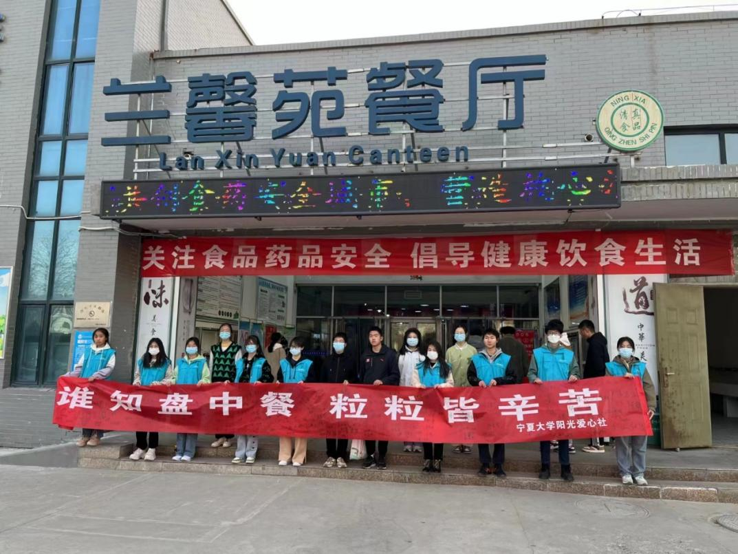 为了让宁大学子更加深入学习习近平总书记关于“坚决制止餐饮浪费行为,切实培养节约习惯,在全社会营造浪费可耻,节约为荣的氛围”的重要指示,3月11日中午,宁夏大学阳光爱心社于兰馨苑和兰芝苑进行“厉行节约,反对浪费”主题活动,号召广大学子积极参与,争做“厉行节约,反对浪费,文明就餐,节约粮食”的践行者、示范者和推动者。