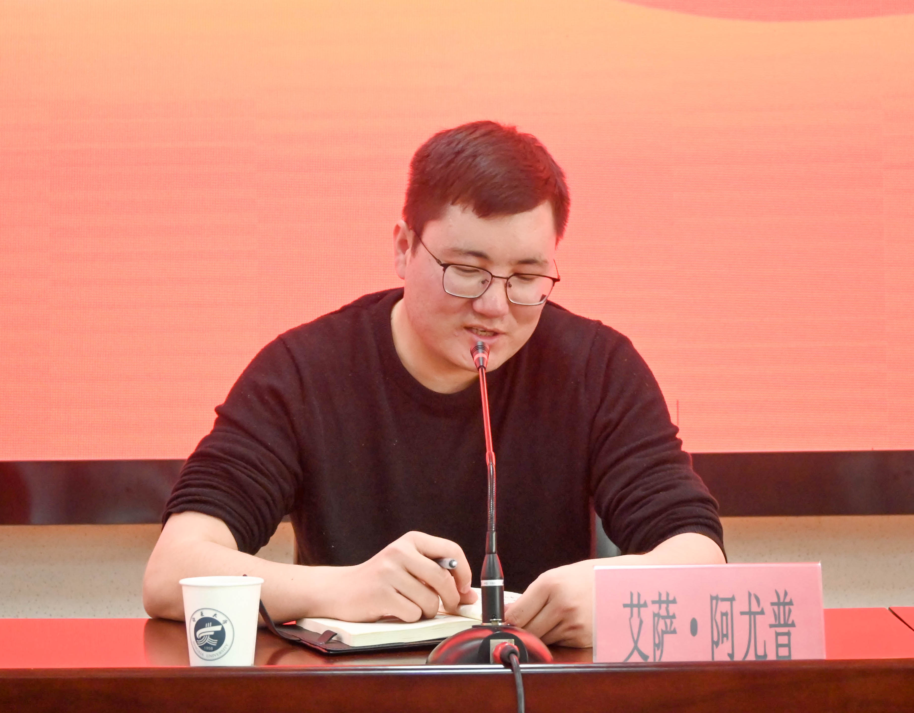 党委副书记常江,学生工作办公室负责人艾萨·阿尤普,学生工作办公室辅导员孙文元,研究生辅导员张春娜及2022级全体同学参加会议。会议由艾萨主持。