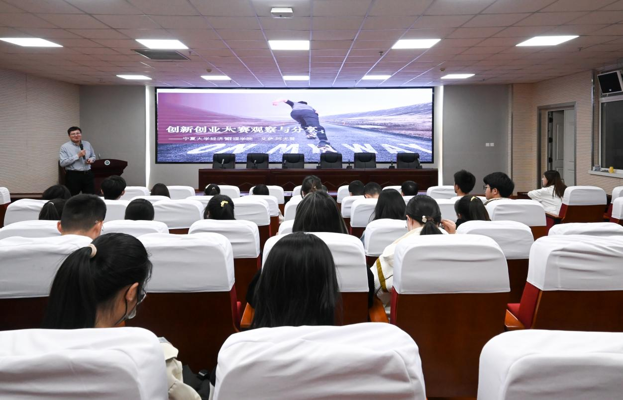 “我敢闯 我会创”创新创业类赛事系列讲座于贺兰山校区文荟楼316会议室顺利举行。该讲座邀请艾萨·阿尤普、禹文杰老师,2020级金融学专业学生禹尧康讲解。