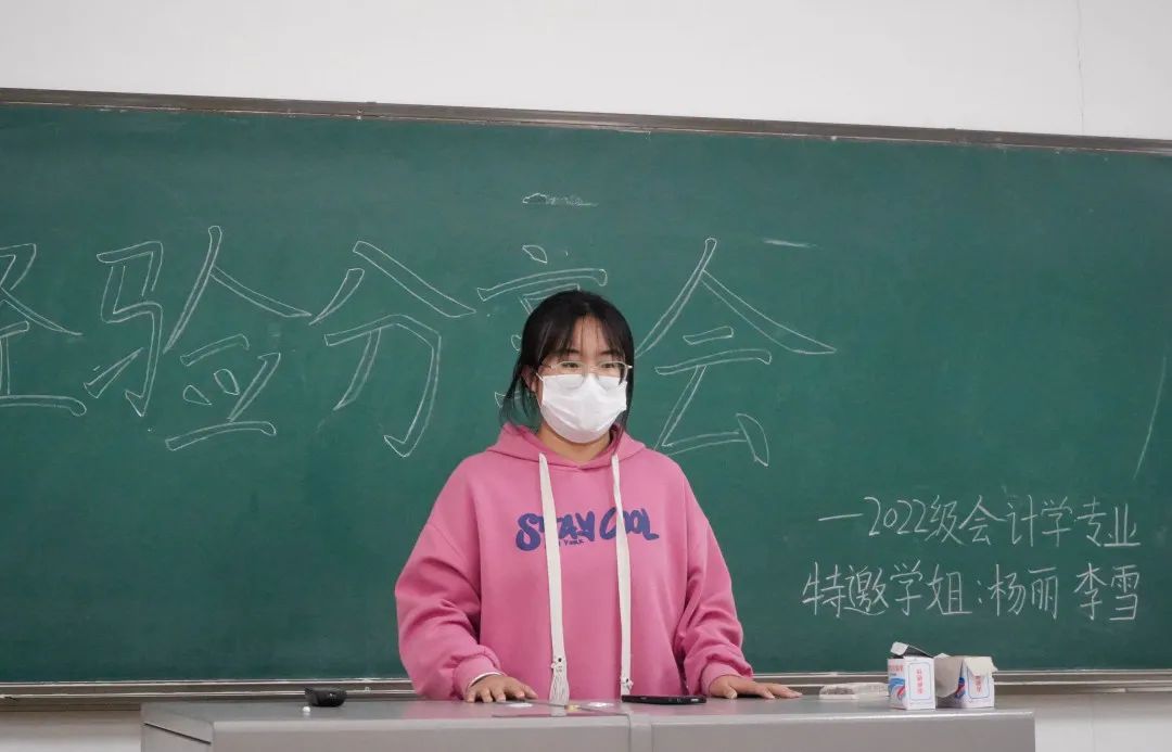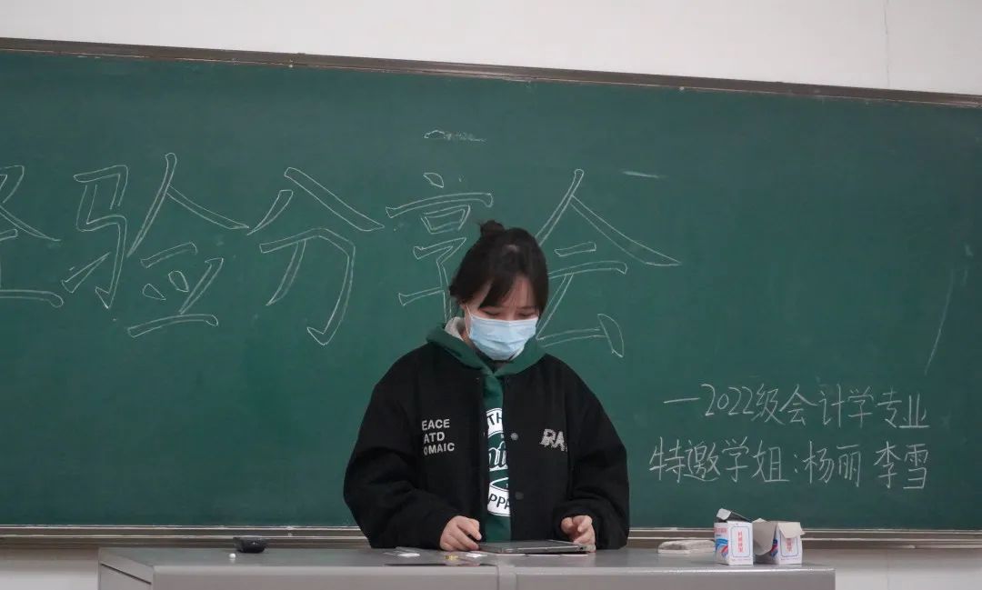 会计学班邀请到了2020级会计学班杨丽、李雪和林昆。杨丽讲述了考取证书的相关事宜,表示考证书一定要立足未来规划,切忌盲目备考。李雪表示针对重要的科目要及时总结并绘制思维导图,加深对知识的理解。林昆阐述了英语学习的重要性,重点说明了背诵单词和学习语法对于提升英语水平的重要作用。