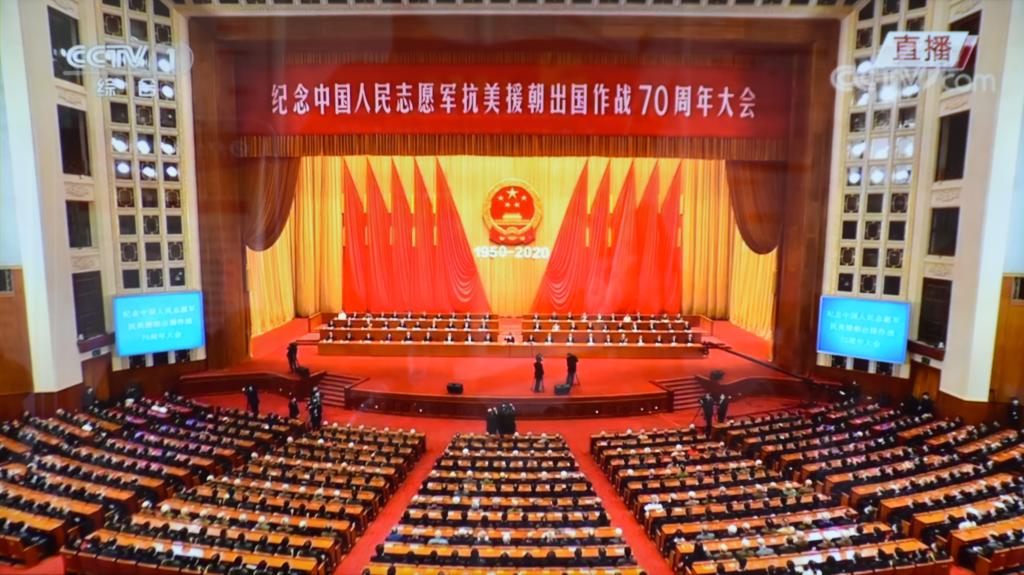 在场同学聆听大会重要讲话,共唱歌曲《歌唱祖国》,共同回顾抗美援朝战争的光辉历史,铭记伟大胜利,缅怀革命先烈,维护正义,凝聚新时代强国强军的伟大力量,为实现中华民族的伟大复兴梦而赓绪奋斗。
