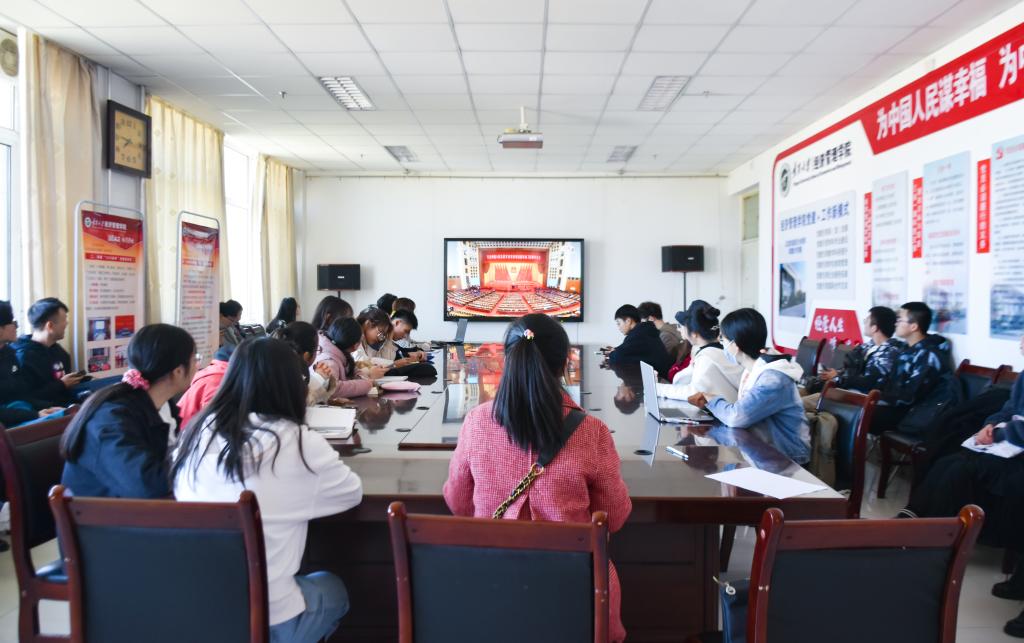 于贺兰山校区文荟楼党建活动室组织学生观看纪念中国人民志愿军抗美援朝出国作战70周年大会活动。工商管理本科生党支部书记姚硕,第十二期发展对象及第36期积极分子参与此次观看活动。