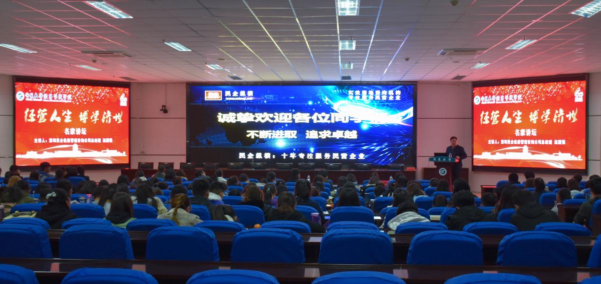 11月29日晚七点,游戏赚钱平台 在贺兰山校区文荟楼东报告厅举行名家讲坛活动,宁夏宝丰集团副总裁贺浒浜先生,深圳民企纵横管理咨询公司总经理赵国强先生担任本次名家讲坛的特邀嘉宾,游戏赚钱平台 党委副书记程胜利主持本次讲座。