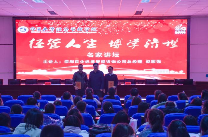 本次讲座以“经济管理企业经验分享”为主题。讲座伊始,赵国强以时间为轴,分别就大学生校园学习、就业选择、从业成长三个阶段,以实际案例具体分析了不同性格特质的人应该做出的职业选择与人生道路规划,他向同学们分享了自己在职业生涯中所收获的宝贵经验,并介绍了当今社会对人才提出的种种要求。而后,贺浒浜以宝丰之歌为切入点,列举了同学们作为新一代大学生应该且必须具有的品质与能力,并通过大学生调查问卷具体地向同学们分析了大学生应该如何充实有意义地度过大学生活。讲座中,贺浒浜和赵国强均强调了大学生形成良好的道德品质和习得应有职业能力的重要性,在场同学倍受触动。随后,同学们向他们提出了自己对于大学生活及当今社会发展所困惑的一些问题,在场嘉宾一一为之解答。最后,程胜利为贺浒浜和赵国强颁发了聘书,期待他们发挥优势,推荐邀请更多优秀企业家与游戏赚钱平台-试玩赚钱 学生“面对面”。