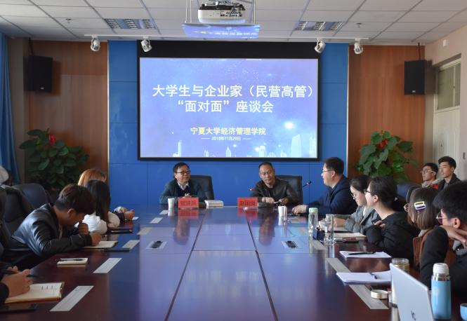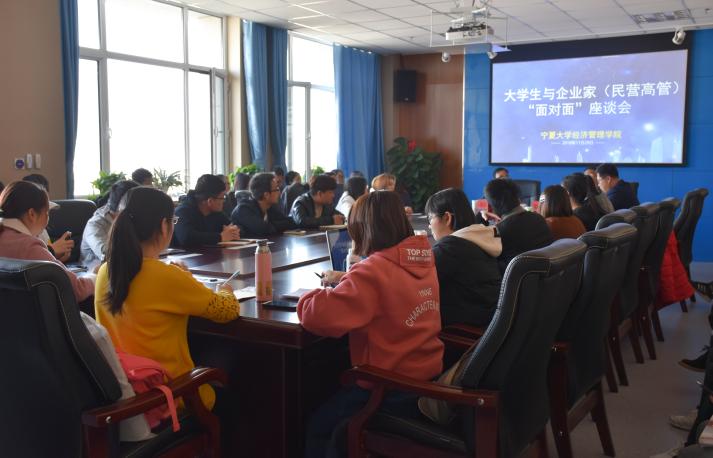 大学生与企业家(民营高管)“面对面”座谈会于贺兰山校区文荟楼904会议室顺利开展。宁夏宝丰集团副总裁贺浒浜及深圳民企纵横企业管理咨询公司董事长、总经理赵国强到场参加,16级工商管理与市场营销专业同学到场学习。此次座淡会以“人力资源”为主题,由游戏赚钱平台