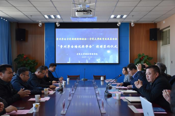 冬日暖阳洒向大地,空气里闪耀着金色的光芒。11月21日下午2时,“贵州茅台培优奖学金”捐赠签约仪式于贺兰山校区文荟楼904会议室隆重举行。在宁夏大学教育基金会与贵州茅台宁夏经销商联谊会地支持下,本项奖学金成功设立。