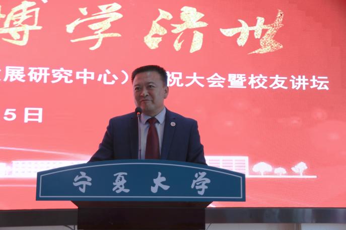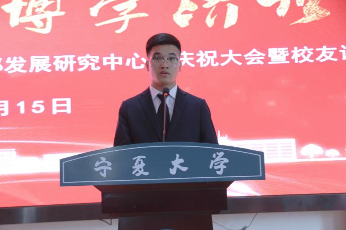 1989级校友代表、宁夏蓝平文化创意产业园董事长王蓝平发言。2004级校友代表、宁夏大学首届MBA联合会副主席、宁夏MBA联谊会副主席、银川特种轴承有限公司董事长何仲存发言。