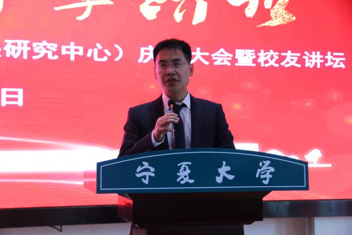 党委书记张桓、院长杨国涛,宁夏大学西部发展研究中心主任、副院长黄立军,副书记李琦,副院长冯蛟、马晓云,宁夏大学西部发展研究中心副主任董小焕、王国庆等参加大会。