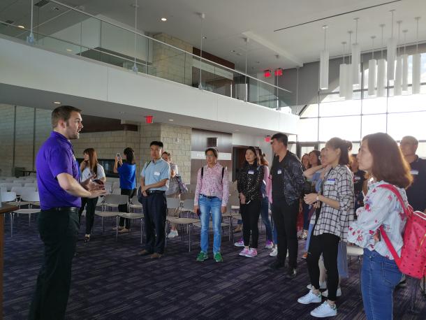 课后安排师生参观了校美式足球体育馆。美式足球在美国体育运动中地位极高,高校都非常重视学生的体育发展,而堪萨斯州立大学在美式足球比赛中通常有不俗的表现。体育馆的参观让师生们深刻感受到了高校体育文化带来的拼搏向上的活力。