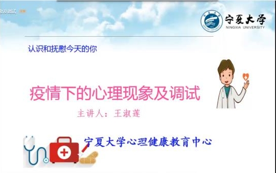 6月23日上午10时,宁夏大学学生处副处长、心理健康教育咨询指导中心主任,宁夏大学心理学副教授、硕士生导师,注册心理师、注册督导师王淑莲受校团委邀请作为宁夏大学2020届线上就业指导系列讲座第四讲主讲人,游戏赚钱平台