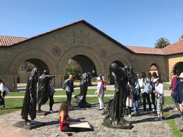| 宁夏大学MBA师生一行在斯坦福校园内罗丹雕塑作品前留影 |