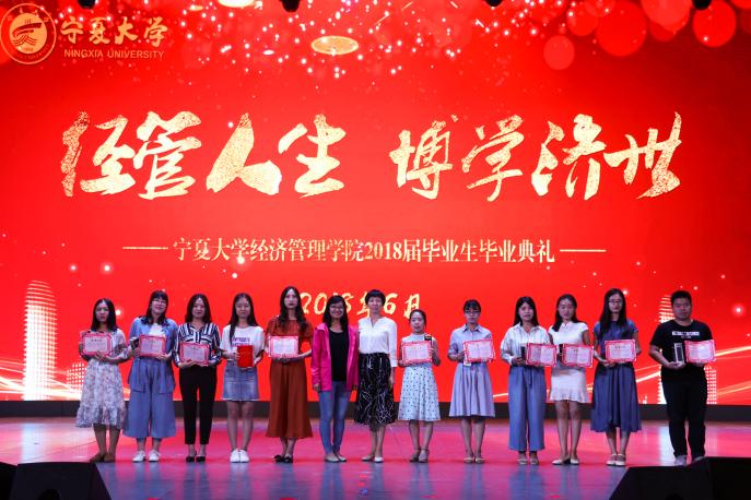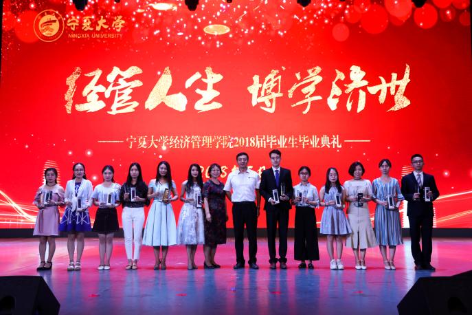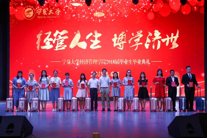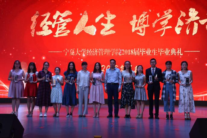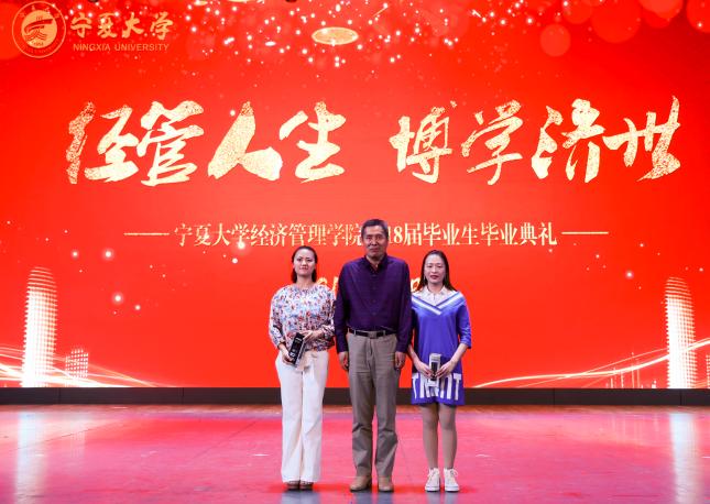经济学系教工党支部书记刘涛、经济学系薛生强为宁夏大学2018届优秀毕业本科生颁奖
