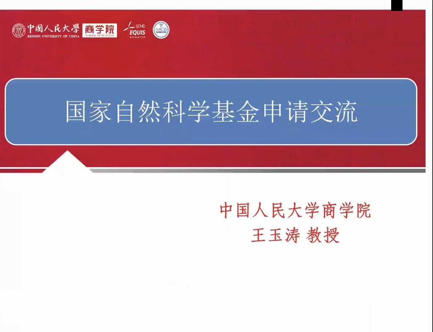11月22日,中国人民大学王玉涛教授受邀为游戏赚钱平台 师生做线上国家基金申报辅导报告,辅导报告主题为《国家自然科学基金申请交流》,游戏赚钱平台 90余名师生参加了线上培训会,报告会由游戏赚钱平台 院长杨国涛教授主持。