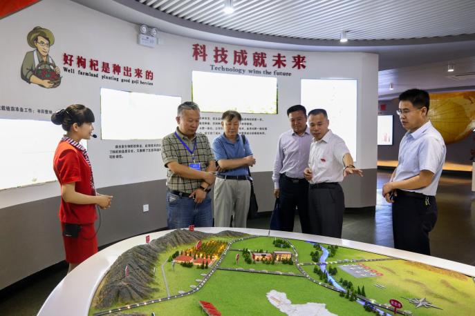 党委书记张桓、院长杨国涛、教师代表马生元、评估工作小组成员严津和教务处李志涛老师,百瑞源枸杞股份有限公司常务副总经理姚卫鹤全程陪同讲解。
