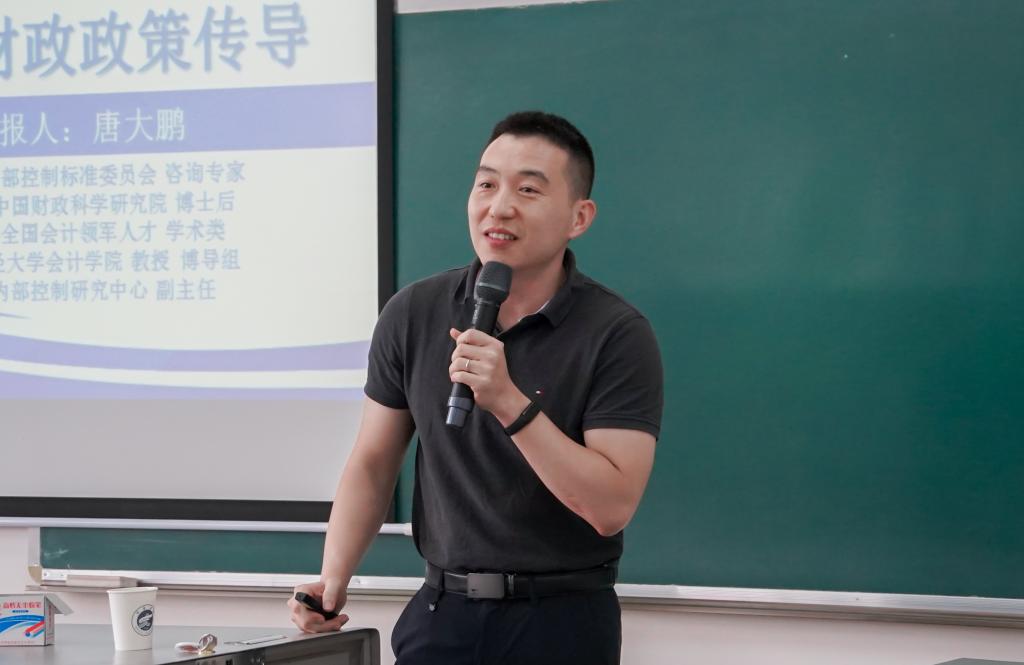 教授唐大鹏进行了学术报告与座谈会。会议以线下报告和线上座谈结合形式举行,宁夏大学教师团队参加了本次活动。本次活动由会计学系主任陈军梅主持。