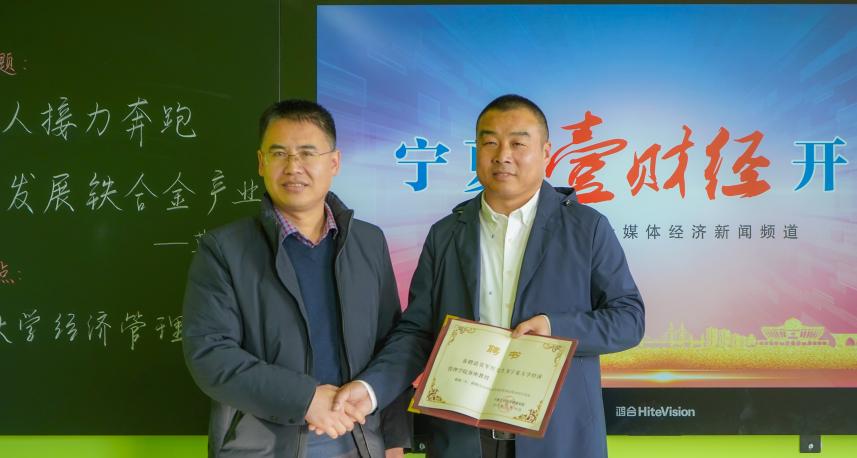 1022日,宁夏日报全媒体经济频道邀请宁夏吉元集团总经理莫军红,在游戏赚钱平台-试玩赚钱 录制《宁夏壹财经开讲》第一期访谈节目。本期开讲主题为“我和父亲两代人,持续发展向前走,绿色发展铁合金产业”。游戏赚钱平台 院长杨国涛、党委副书记程胜利参加节目录制。