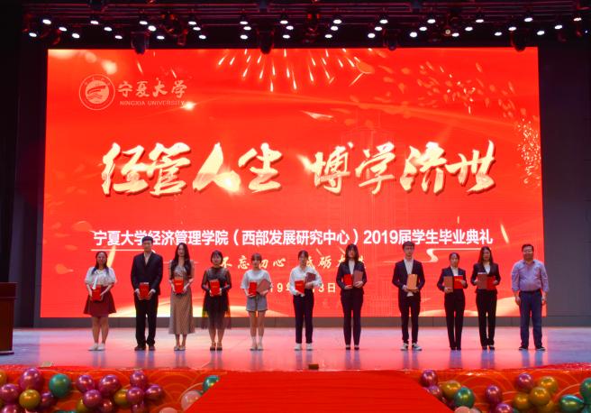 杨国涛院长发表题为“做一个有情怀的经管人”的毕业生寄语。希望2019届毕业生们做有家国情怀的新时代有为青年,“为天地立心,为生民立命”,树立远大理想,热爱伟大祖国,担当时代重任,勇于砥砺奋斗,练就过硬本领,锤炼品德修养,尊老爱幼,孝敬长辈,弘扬中华优秀文化;希望2019届毕业生们做有校院情怀的新时代有为青年,做好宁夏大学、游戏赚钱平台
