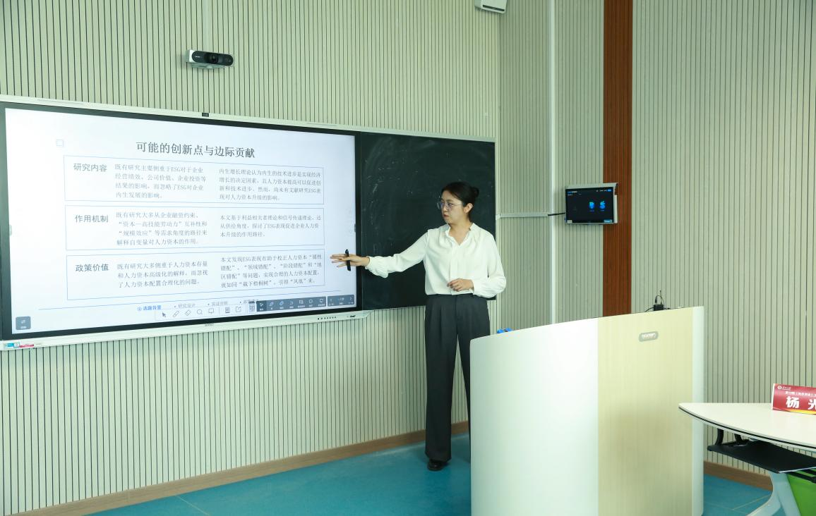 首先进行报告的是李文佳,其报告题目为《梧高自有凤凰栖:ESG表现与人力资本升级》。众所周知人力资本是创新的重要基础和驱动力,但少有文献从企业ESG表现的角度对人力资本进行研究。以此为切入点,李老师团队扩展了ESG对人力资本影响的文献,为ESG的发展、人力资本高级化与配置合理化,实现创新驱动发展战略以及促进西部地区高质量发展提供了可靠的经验证据和政策启示。汇报结束后,点评嘉宾对该文提出了建议,陈永清建议论文文献要与论文主题、研究方向密切相关,要针对研究问题提出具有针对性的、有效的政策建议。邹红表示论文要着重于书写出创新点,抓住研究重点,直击研究主题,寻求理论支撑。叶初升建议论文需要由现象出发,发现前人研究方向上、方法上的漏洞,寻找出自己的研究问题,针对问题展开研究。