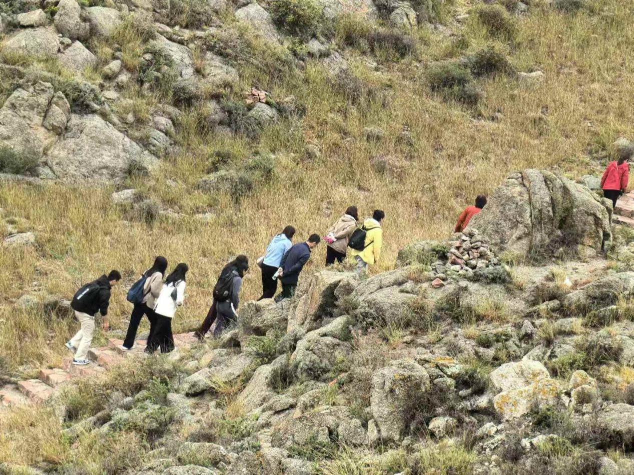 下午2:30,教职工们首先来到贺兰山拜寺口双塔,登山游览雨中贺兰景色。